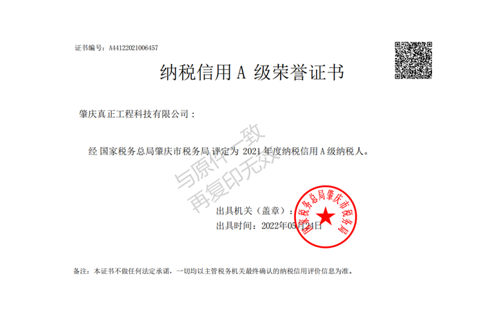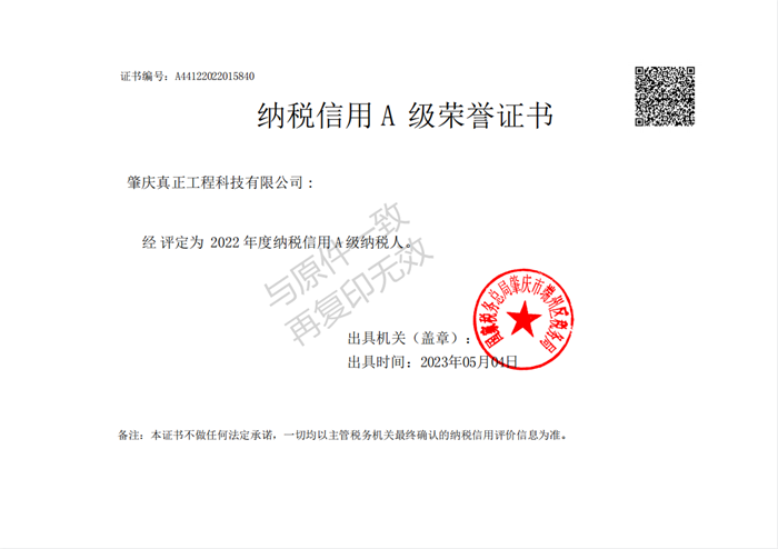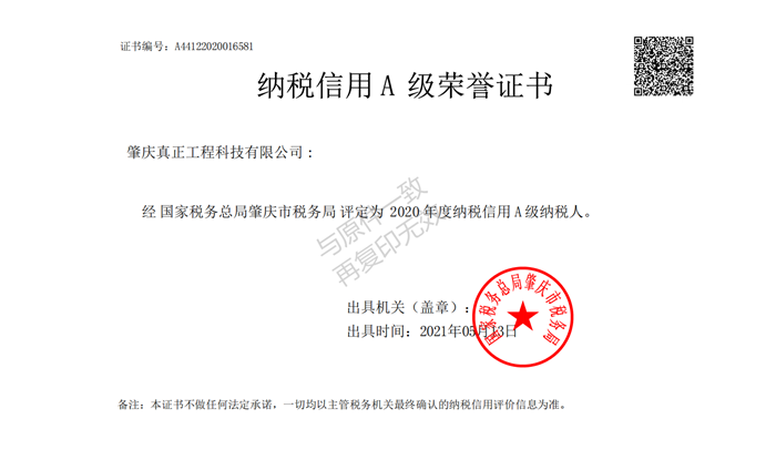 納稅信用A級(jí)榮譽(yù)證書